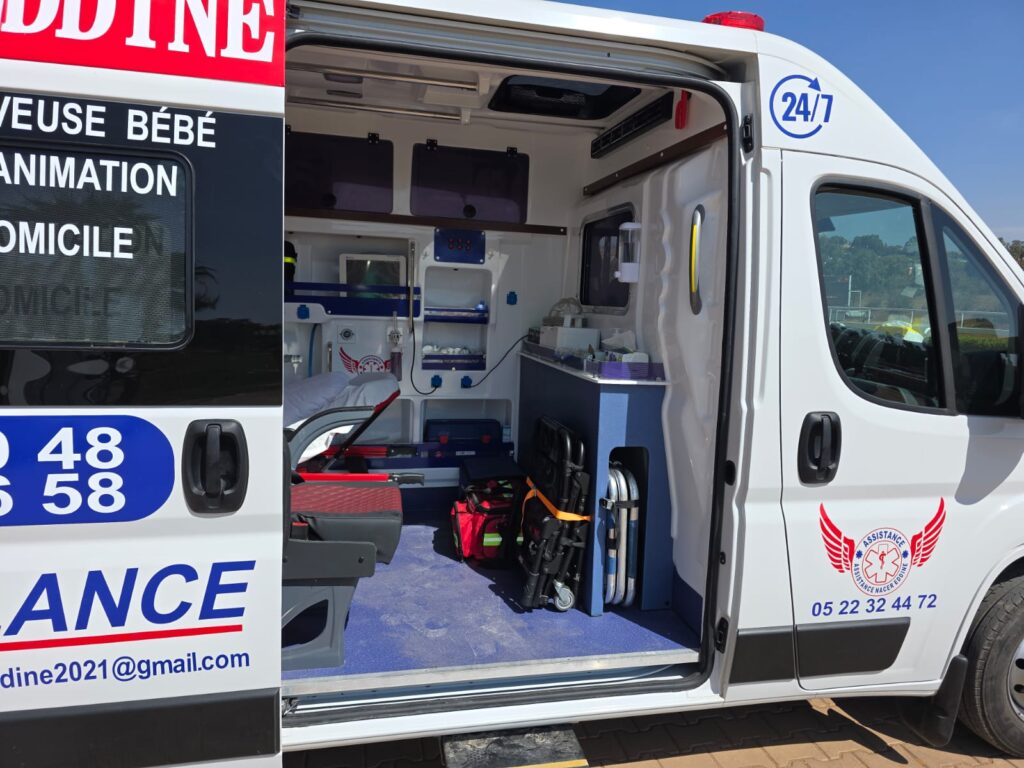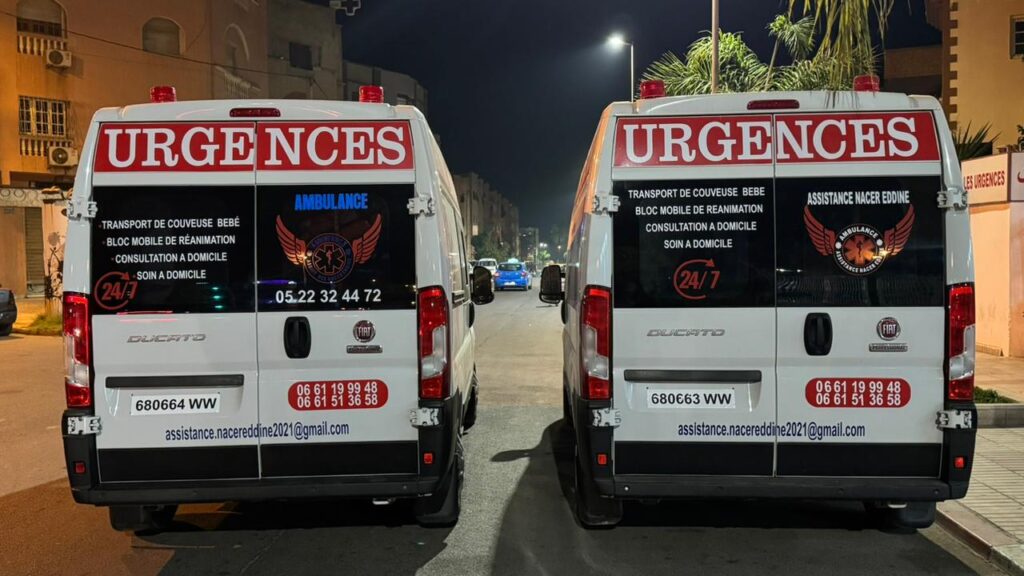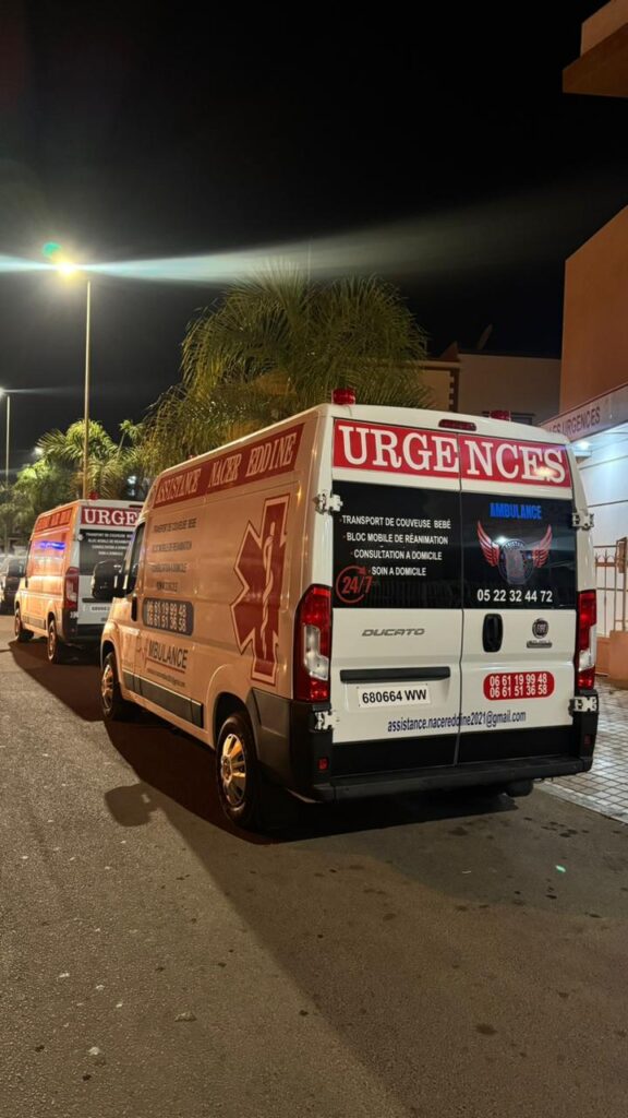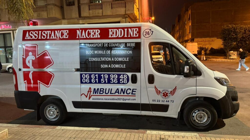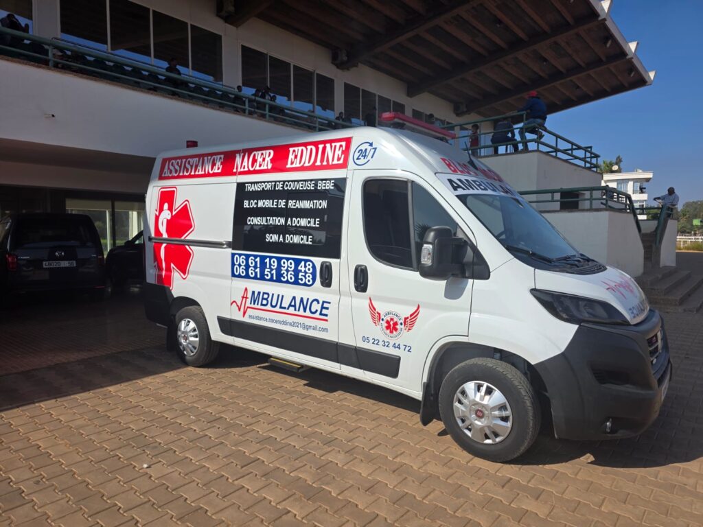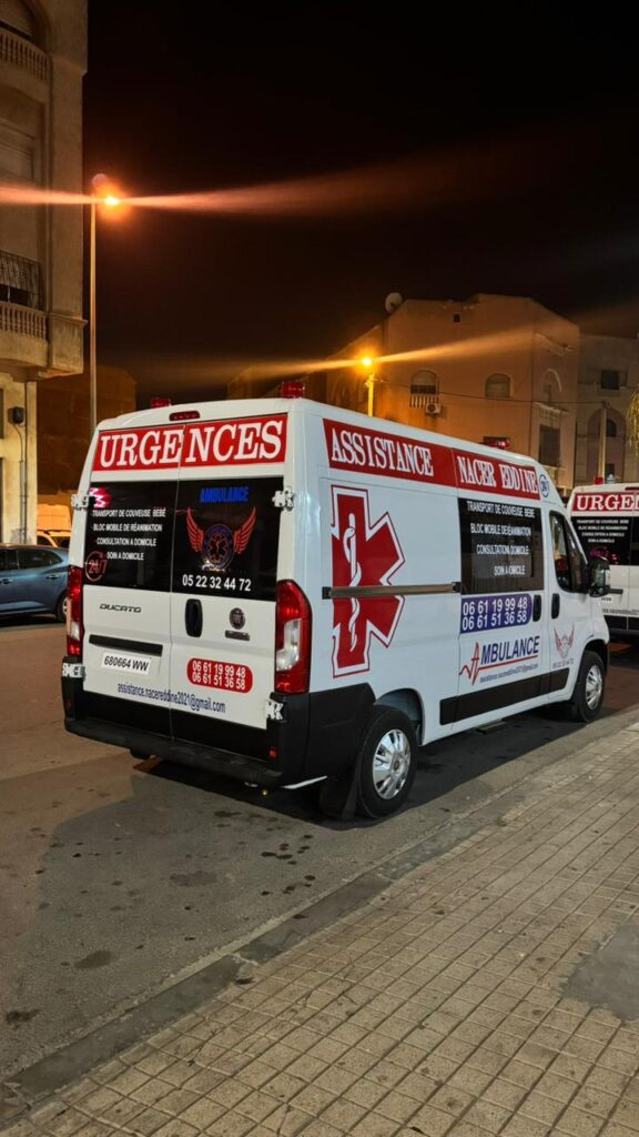 Ambulance Berrechid Nacerddine Secours est un service d’ambulance privé professionnel basé à Berrechid, spécialisé dans le transport sanitaire, les transferts médicaux, et l’évacuation sanitaire au Maroc. Grâce à notre équipe formée et nos véhicules médicalisés, nous assurons des interventions rapides, sécurisées et efficaces, 7 jours sur 7, 24h sur 24.